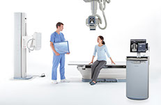 RADREX™-i — современная система, оснащенная крупноформатными плоскопанельными детекторами, вертикальной стойкой снимков, столом и креплением для ЖК-мониторов.